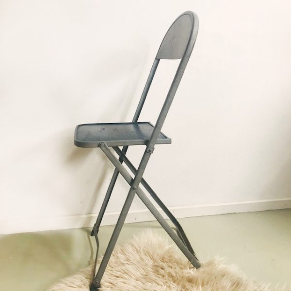 Zware industriele klapstoel ontworpen door Friso kramer 1933 voor Ahrend. Aan het achterzijde is het logo van Heineken nog duidelijk zichtbaar. Met recht een collector’s item.