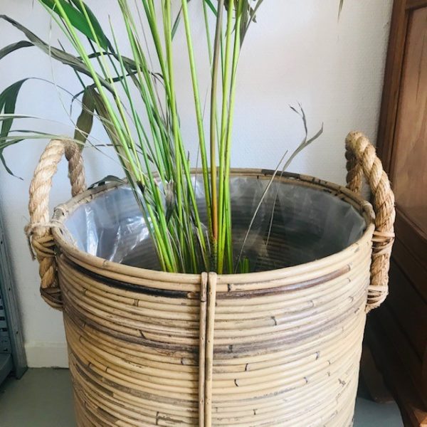 Prachtige grote rotan XL bloempot waterdicht gevoerd met plastic. Geschikt voor een grote kamerplant.